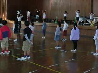 3年生のマット運動のサポートに、「佐土原ジムナスティッククラブ」の2名の先生が指導に来てくださいます。より専門的なアドバイスや励ましを受けて、子ども達は少しずつできることが増えていくことに、喜びを感じながら練習していました。練習のはじめに行うストレッチは家でも自分でできそうですね。