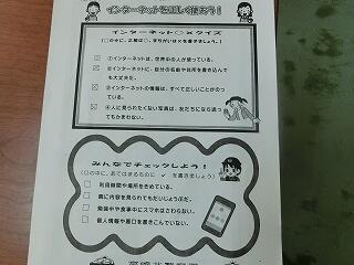 北警察署の少年課の4名の方が来校され、学級ごとにインターネットの使用について、ビデオを見たり、ワークシートに感想を記入したりして、正しい使用の仕方について学びました。