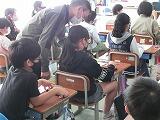 4年生の算数でそろばんの学習を行いました。3年生の時に、簡単なたし算・ひき算の学習でそろばんの使い方を学習しましたが、その後、生活の中では、ほとんど使うことはありません。また、4年生でのそろばんの学習は1時間です。そこで、町内でそろばんを教えておられる脇本博子様と息子さんに来ていただいて、1学級ずつ指導を行っていただきました。