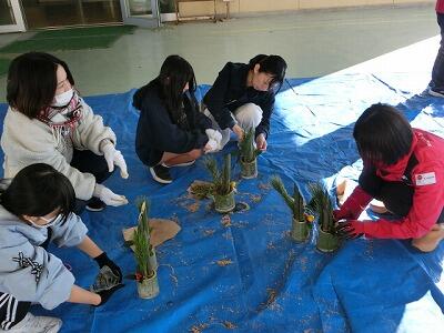 12月14日(土)には、ミニ門松・しめ縄作り及び校門の門松作りも行いました。