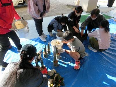 高鍋舞鶴ライオンズクラブ様、宮崎キヤノン様、福岡生花店様、岩切建設様、坂本様、堀田様、東中の先生方と生徒の皆さん、東小PTA執行部の皆様方、事前の材料の準備、竹の切り取り、わらの準備、当日のご指導などたくさんの方々からのご支援とご協力ありがとうございました。