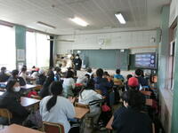 当日は、熱中症対策のためTeamsを活用し各教室との配信で行いました。