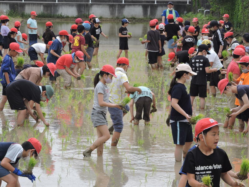 4月19日(水)、5年生が田植えを行いました。裸足になり、丁寧に苗を植えていきました。秋の収穫がとても楽しみです。ご指導くださったJAおすずの皆様、ありがとうございました。