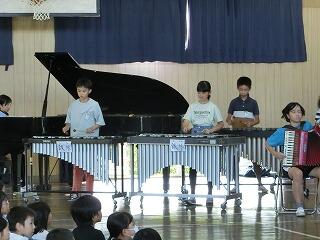 演奏曲目は、5年生が合唱「君をのせて」と合奏「ルパン三世」、6年生が合唱「虹」と合奏「情熱大陸」どちらも、たいへん素晴らしい発表でした。