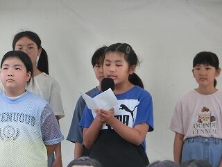 児童代表の作文発表は、2年生と4年生でした。校長先生のお話、校歌斉唱、夏休みの生活安全面についてのお話、健康面についてのお話がありました。そして、最後に6年生児童の表彰紹介がありました。