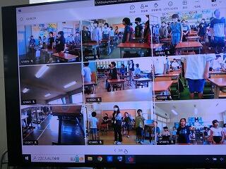 当日は、熱中症対策のためTeamsを活用し各教室との配信で行いました。