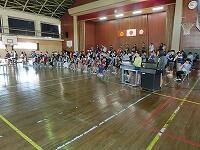 全員が避難し、人数確認まで終了したのは3分52秒でした。校長先生の話では、もう少し避難完了の時間を短くするために、建物から出たら、走って集合すること、先生が人数確認をできるだけ早く終えることができるように、並び方などの協力をするとよいなどの話がありました。