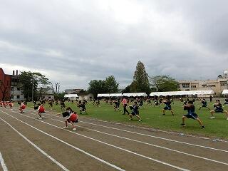 10月16日(水)1校時、第4回の全体練習は、練習を始めましたが、すぐに雨が降り出しました。