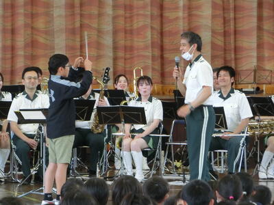 当日は宮崎県警察音楽隊の皆さんが素晴らしい演奏を聴かせてくださいました。曲目は、スーパーマリオブラザーズ、シロフォンオブザマジック、ファミリーアニメコレクション、アイドル、たからじま、名探偵コナン、ミッキー、サンダーバード等でした。