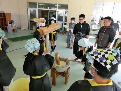 12月13日(金)2~5校時に農家の方々と語る会、もちつきを行いました。