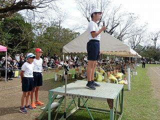 プログラムは、全員参加の徒走、団技、そして選抜リレーでしたが、5・6年生のリーダーを中心に応援もしっかり行いました。