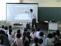 九州電力の方に講師として来ていただき、1年生を対象に、河川安全教室が行われました。キャンプやつりで川に遊びに行ったときなど、急な大雨で危険な状況になった時の避難の仕方や、ダムの放流の際の電光掲示板やサイレンなど、映像で見せながらお話してくださいました。命に関わる大切な話なので、1年生ながら一生懸命聞いていました。