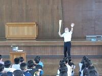 体育館で待つ6年生の拍手の中、トーチを掲げて入ってこられました。6年生の代表にトーチを手渡し、聖火リレーに応募した理由や参加しての感想、子ども達へのメッセージ等についてお話してくださいました。