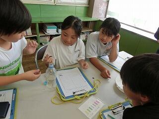 6月4日1校時に、4月26日に自分たちで植えた稲の観察に西中横の田んぼに行きました。田植えをした時よりも生長した稲をタブレットで写真に撮ったり、自分の手の大きさと比べたりさまざまな方法で観察をしていました。生長している稲の様子に自然と笑顔が溢れていました。