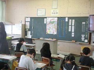 1組は国語の授業でした。ちょうど音読しているところで、子ども達が気持ちを込めて一生懸命に読み進める姿がとても印象的でした。