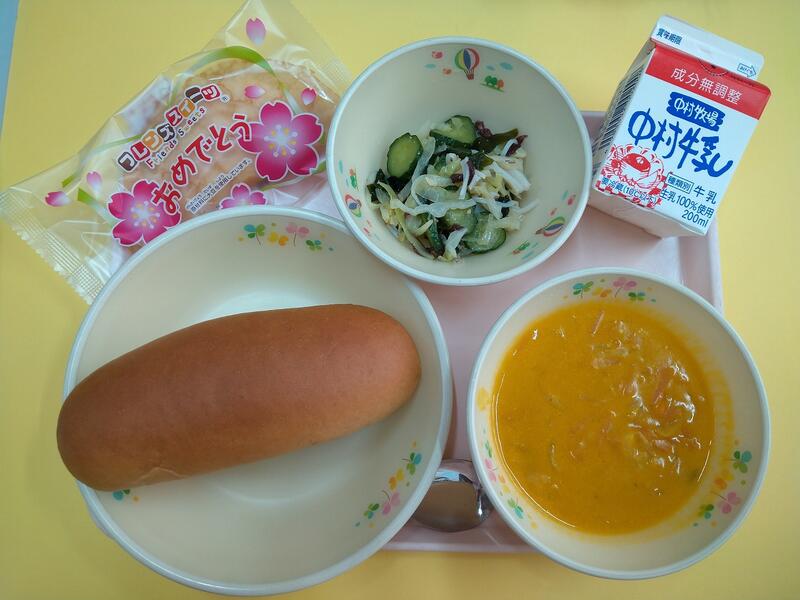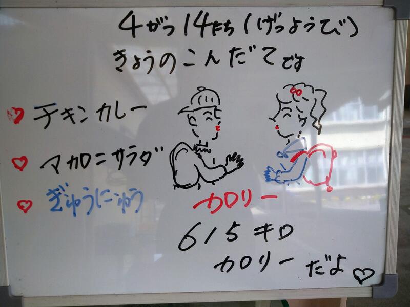 今日は入学式でした。月曜日からは1年生の給食もスタートします。い年生のみなさん楽しみにしていてくださいね。