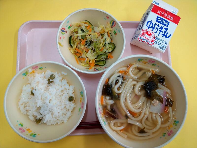 〇 ピースごはん 〇 わかめうどん 〇 じゃこサラダ