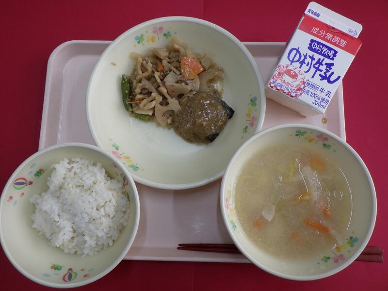 あさって11日は鏡開きの日です。むかしから、お正月に神様へお供えしてあった鏡餅を小さく割り、お汁粉やぜんざい、お雑煮などに入れて食べ、一年の幸せを願う習慣があります。給食では、今日、みぞれ汁に白玉もちを入れて作りました。とてもやわらかいおもちです。あわてず、ゆっくりよくかんで食べましょう。その他に、先の見通しがよいという意味の「れんこん」できんぴらを作りました。新年の願いをこめた縁起の良い食べ物といわれています。