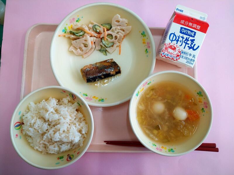 〇 麦ごはん 〇 のっぺい汁 〇 さんまの甘露煮