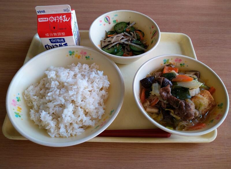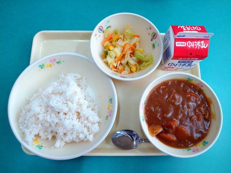 「今日は、牛乳や生クリーム、チーズを使ったクリームスパゲティです。生クリームもチーズも、牛乳から作られます。牛乳は元々生まれたばかりの牛の赤ちゃんが初めて口にするものです。自然の栄養ドリンクと言われるほど、栄養のバランスがよく、栄養たっぷりです。でも牛のお乳は、本当は子牛のためのものです。子牛が生まれなければ、お乳も出ません。それで、牛を人工授精させ、牛乳がとれるように管理しているのです。大事に飲まなければ牛に申し訳ないですね。毎日の給食に出る牛乳や今日のように料理に使っている牛乳は、宮崎県都城市の中村牧場さんの牛乳です。」