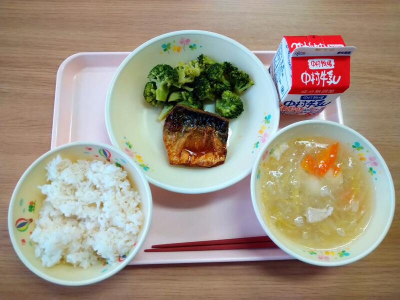 〇さばのカレーやき 〇キャベツのこんぶあえ