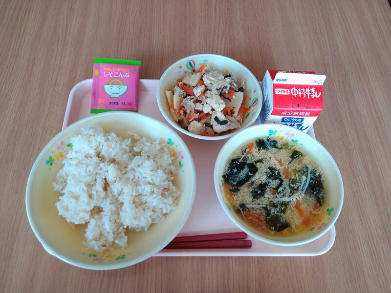 〇いわしのかばやき 〇キャベツのこんぶあえ