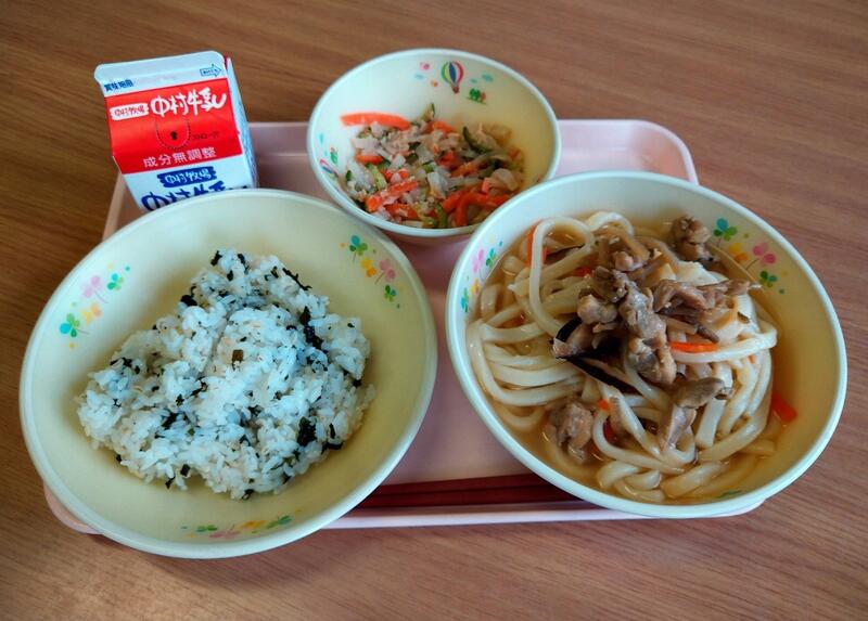 「給食のうどんは、鰹節とアジの子ども『アジ子』でとっただし汁で作っています。5年生になると、家庭科でだしを取り方を習います。和食では、だし汁の役割がとても大きく、煮物や汁物、お浸し、炊き込みご飯等いろいろな料理に使われています。だしにはいろいろな種類があって、鰹節や昆布、いりこ等の食材を水につけ、火にかけて煮出して作ります。鰹節やいりこでとっただしは、魚のうまみがしっかりとしていて、昆布のだしはさっぱりとしたおいしさです。」