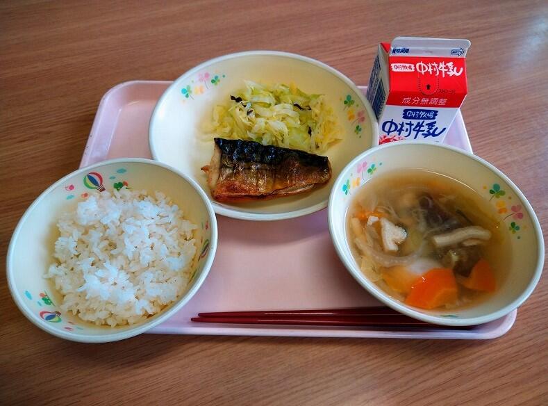 〇さばのカレーやき 〇キャベツのこんぶあえ