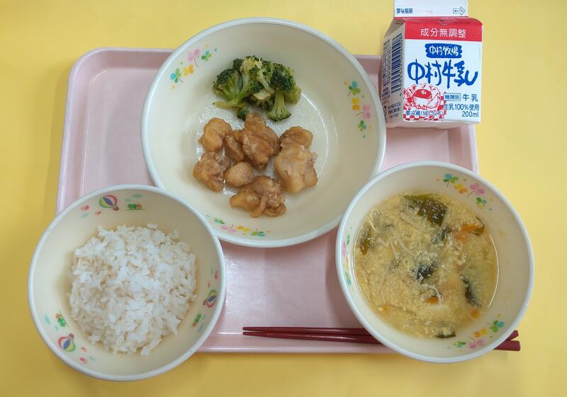 〇 むぎごはん 〇 さつまいものみそしる 〇 さかなのいそべあげ