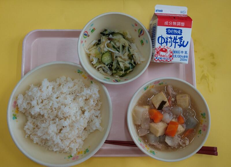 〇 むぎごはん 〇 ぶたじる 〇 ひゅうがどりコロッケ