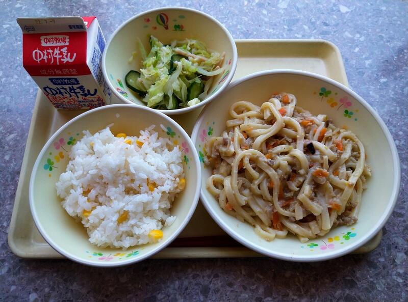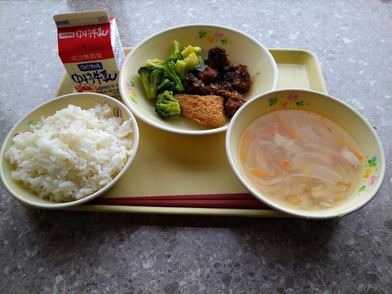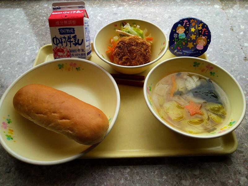 「今日は、宮崎県産の豚肉を使った『豚じゃが』です。豚肉には血のもとになる鉄や、疲れをとるビタミンB1がたくさん含まれています。2学期が始まって今日は3日目。まだ夏の疲れも残り、体も疲れやすくなります。ビタミンB1たっぷりの豚肉を食べて、疲れをとりましょう。夜は夜更かしせずに早く寝て、しっかり疲れをとることも大切ですね。」