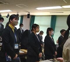 7日の全校集会内で、生徒指導主事の先生と生活委員会の正副委員長があいさつの模範を紹介してくれました。先生方が既に会話をしている際には黙礼、対面している時には明るいあいさつの2パターンを分かりやすく表現してくれました。自分でいろんな場面を想定して、行動すること、とても大事なことですね。