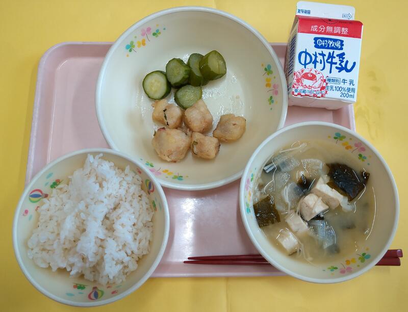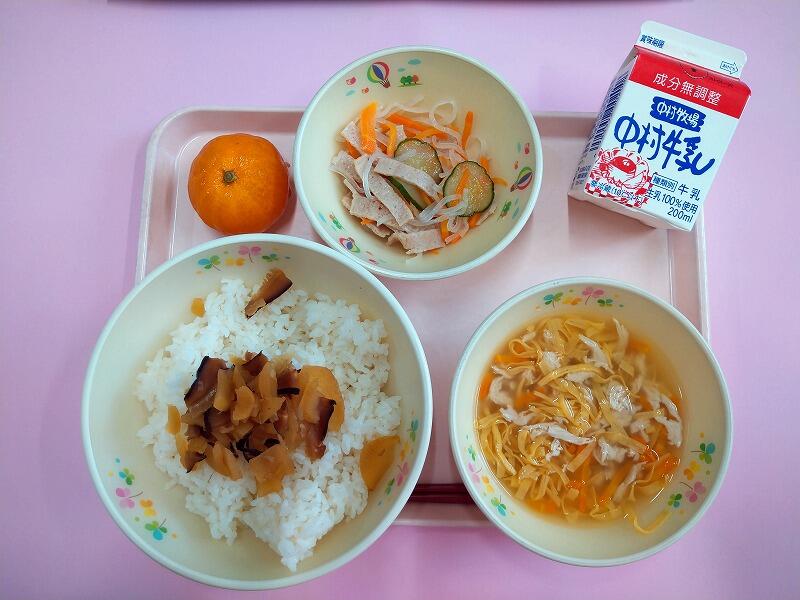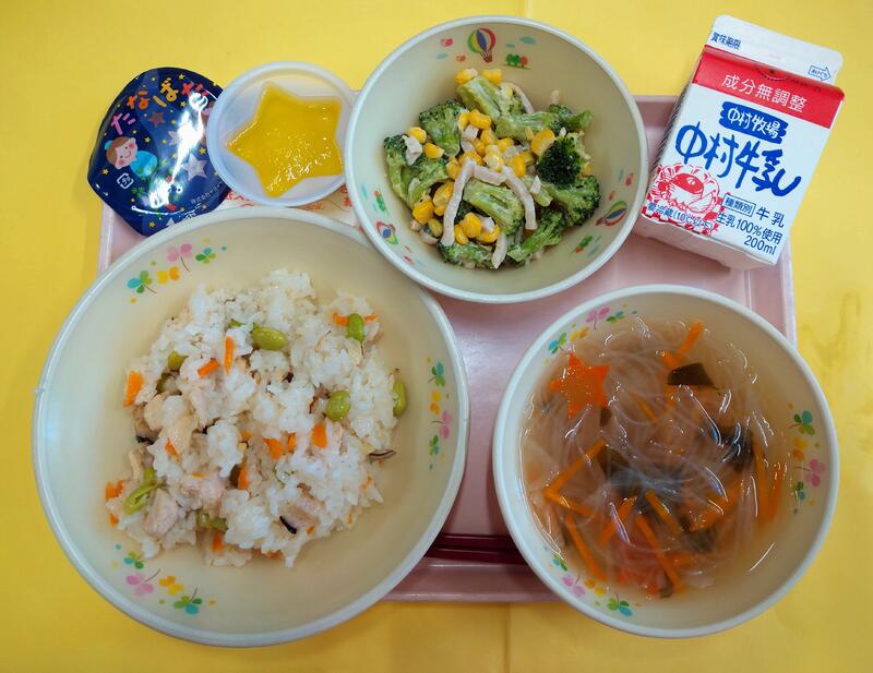 〇 むぎごはん 〇 かぼちゃのそぼろに 〇 はるさめのすのもの
