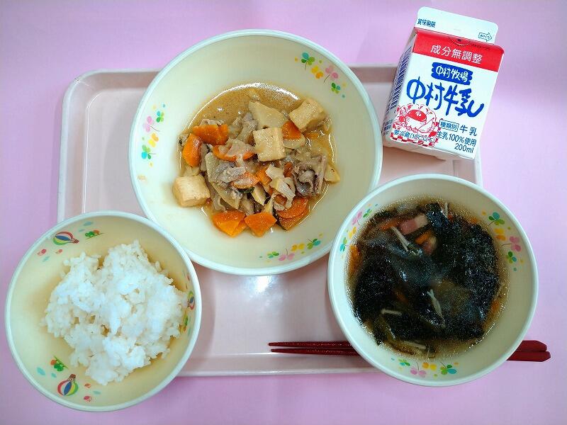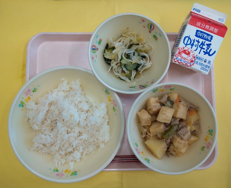 〇 むぎごはん 〇 ぶたじゃが 〇 かいそうサラダ