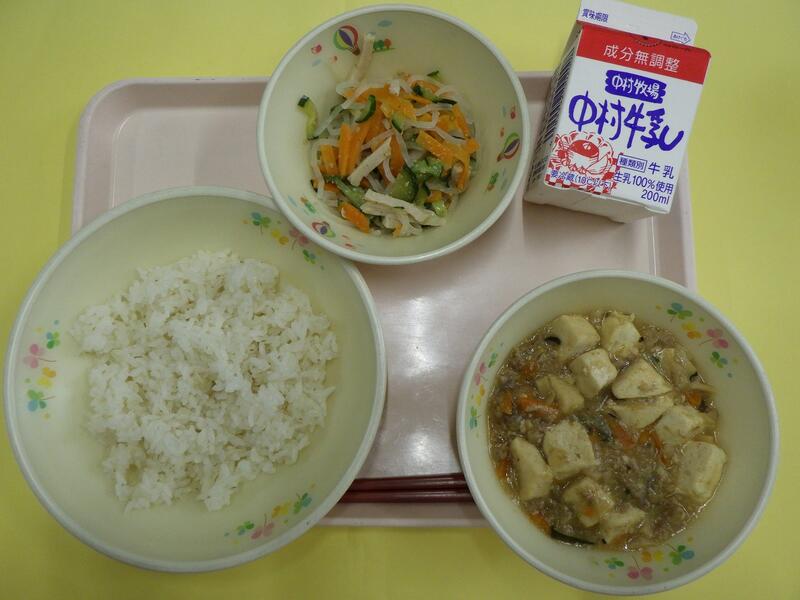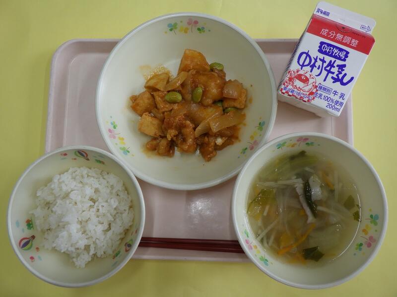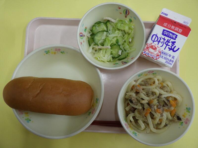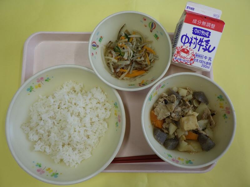 みなさんは、よくかんでいますか?よくかむとだ液がたくさん出て、歯がとけるのを防いだり、口の中をきれいにしたり、ミュータンスというむし歯をつくるばい菌を弱らせたりします。今日はむし歯予防デーで、10日までは歯と口の健康週間です。歯の健康について考える良い機会ですね。今日の給食は、かみごたえのあるするめやごぼう、千切り大根を使った「かみかみサラダ」です。よくかむことを意識して食べてみましょう。一口、何回かめるかな。
