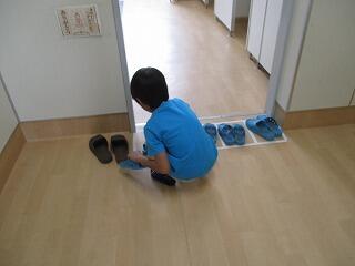 次は、靴箱掃除です。靴についている砂や泥をきれいに掃きます。