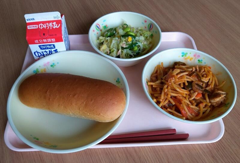 「イタリア料理でおなじみのパスタは、小麦粉を原料としてめん類です。いろいろな形や太さのものがあり、その数は300種類以上と言われています。イタリアでは13世紀頃から作られていたという記録があり、イタリア方日本へ伝わったのは明治28年、生産が始まって広く食べられるようになったのは昭和30年頃とされています。日本では細長いものを『スパゲティ』、3~5㎝程度の筒状のものを『マカロニ』と呼び、グラタン、サラダ、スープ等いろいろな炉ウリに使われます。ラザニアやニョッキもパスタの仲間です。イタリアにはいろいろなパスタ料理がありますが、今日のナポリタンは日本で生まれた料理だそうですよ。」