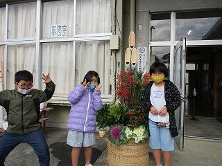 放送で、正月飾りの「門松」を昼休みや登下校の時に見てください。と呼びかけたところ、すぐに4年生が見に来てくれました。