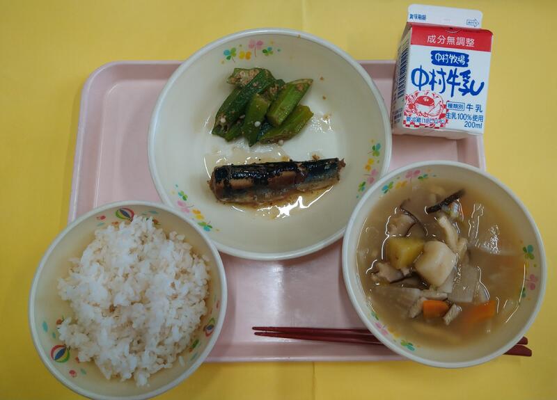 今日の宮崎県産の食材は、かぼちゃ、なす、ゴーヤ、スイカでした。かぼちゃが甘く子どもたちも大満足でした。