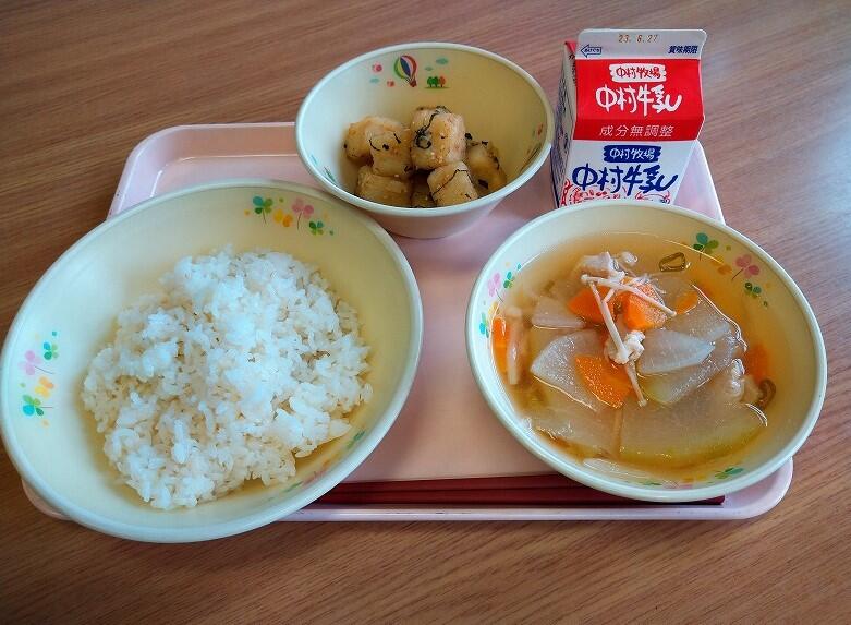 今日の給食の千切大根は、宮崎県の特産品として、国富町や田野町でたくさん作られています。その作り方も、全国的にも有名ですね。冬の時期にこの光景がよくみられますので、ぜひ一度見に行くといいですね。