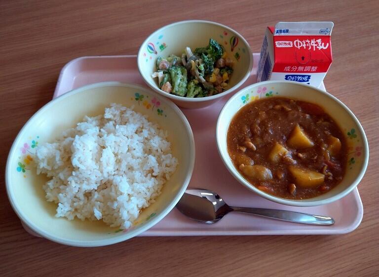 いつも思うことですが、給食で出るカレーは独特のうまさがあります。調理の方々の技術ももちろんですが、カレーの調味料を見ると、カレールウ、ケチャップ、ソース、にんにく、カレー粉、ワイン、鶏がらスープ、りんごピューレとたくさん…なるほど!と思いました。今日もおいしい給食でした。
