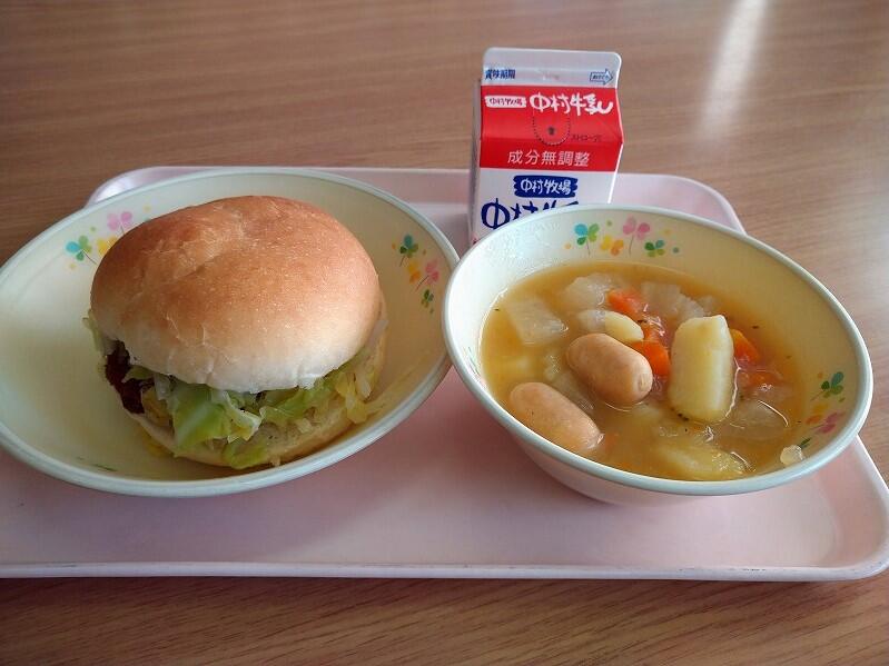 今日はてりやきバーガーを作りましょう。バーガーパンに、キャベツとてりやきチキンパティをはさんでできあがりです。上手にできましたか?ポトフは、フランスの家庭料理です。牛肉やウィンナーなどの肉、大きく切ったにんじん、たまねぎ、かぶ、セロリなどの野菜をグツグツとじっくりにこんで作ります。日本でいうと、おでんのような料理です。いろいろな食べ物をいっしょに食べられるので、栄養たっぷりで、体も温まりますね。
