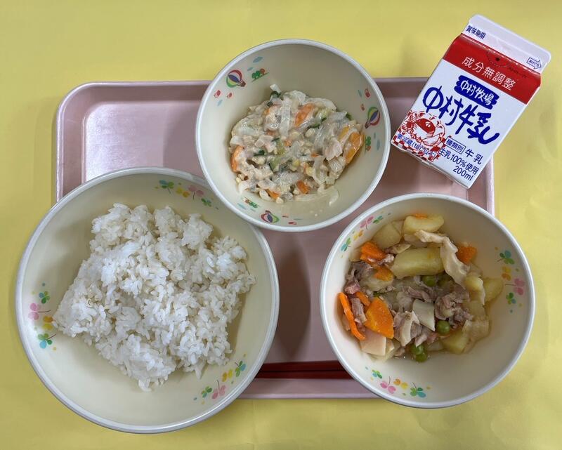 〇 むぎごはん 〇 しんじゃがのベーコンに