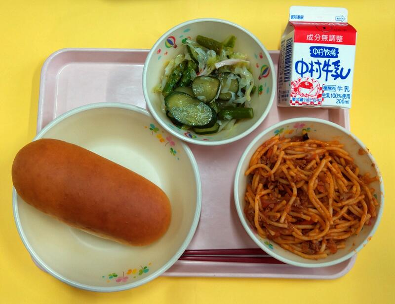 〇 チーズパン 〇 ミートスパゲティ 〇 グリーンサラダ