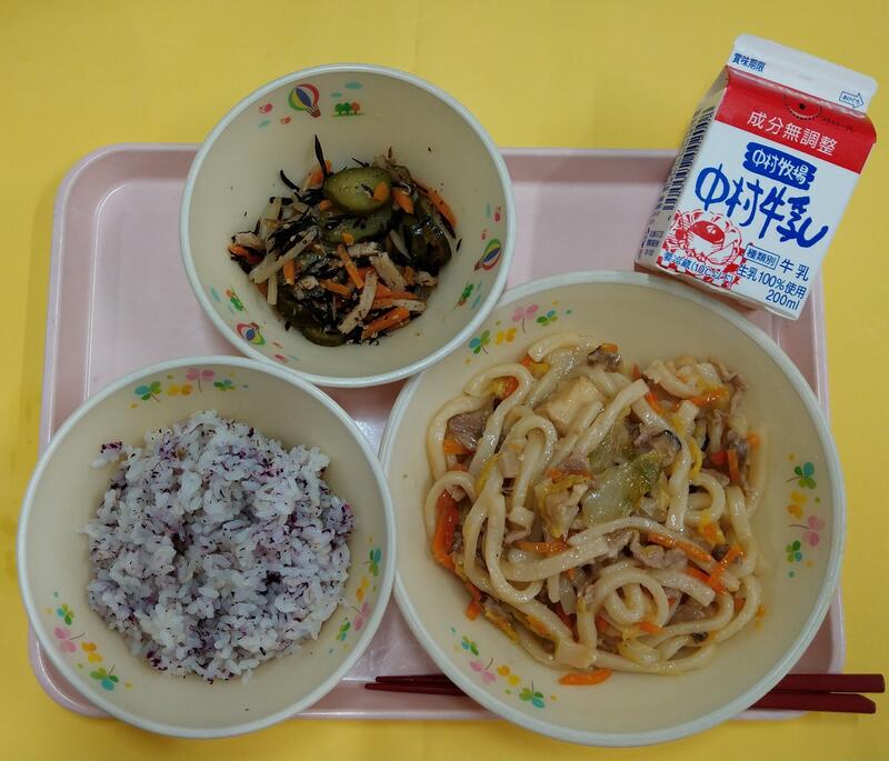 〇 ゆかりごはん 〇 うどんすき 〇 ひじきとごぼうのサラダ