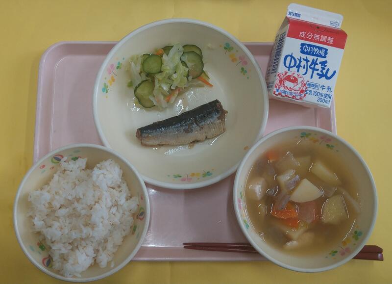 〇 むぎごはん 〇 けんちんじる 〇 いわしのかぼすレモンに