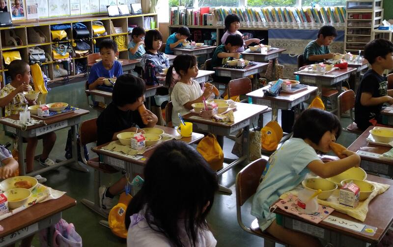 やってきました!あげパン~1年生は初めてのあげパンに朝からわくわく(^o^)上手に食べられた人、きなこが口の周りにつき、難しそうに食べていた人・・・・それでもおいしいあげパンに大満足でした。また、お家で感想を聞かれてください。