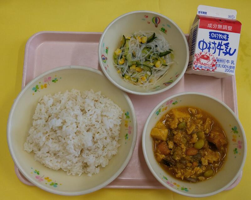 〇 むぎごはん 〇 かぼちゃのそぼろに 〇 はるさめのすのもの