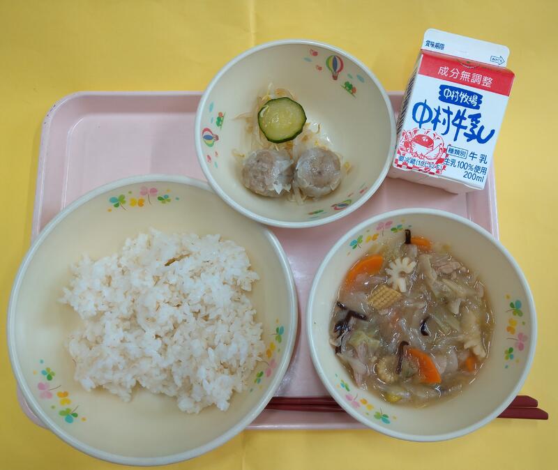 〇 ちゅうかどん(むぎごはん) 〇 ポークシューマイ2個 〇 ゆでもやし