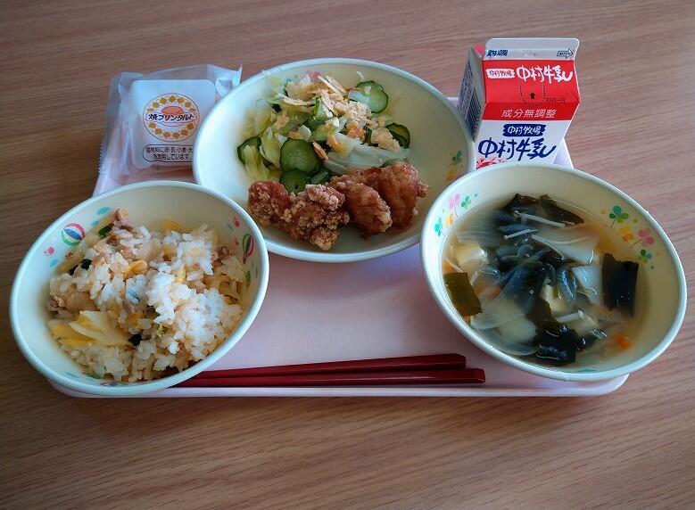 〇とりにくのからあげ(2こ) 〇アメリカンサラダ・やきプリンタルト